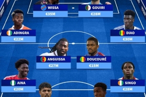 中場:阿迪格拉(科特迪瓦,2200萬)、安古伊薩(喀麥隆,2700萬)、杜庫雷(馬里,1500萬)、迪奧(塞內(nèi)加爾,3000萬)