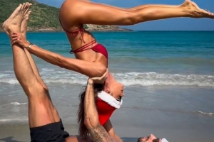 特拉普與未婚妻巴西超模古拉特頭戴圣誕帽,在海灘上展示阿克羅瑜伽高難度動(dòng)作,特拉普社媒曬出視頻,配文:“我們的熱帶圣誕節(jié)傳統(tǒng),祝愿你與所愛之人共度美好時(shí)光,節(jié)日快樂!”
