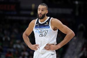 防守中堅(jiān)!戈貝爾半場(chǎng)3中2拿到5分7板3帽但有3犯規(guī) 正負(fù)值+13