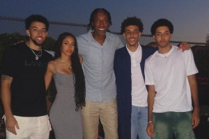 據(jù)美媒統(tǒng)計(jì),皮蓬一共生了7位子女,圖中的4個(gè)孩子均與拉爾薩所生,分別是小皮蓬(24歲,左一)、普雷斯頓(23歲,右一)、賈斯?。?0歲,右二)和索菲婭(16歲)。