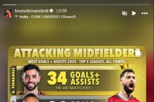 體育資訊12月29日訊 B費(fèi)更新社媒,曬出自己在2025年五大聯(lián)賽進(jìn)攻型中場(chǎng)進(jìn)球+助攻數(shù)據(jù)的排名,他本人以35次進(jìn)球+助攻位列榜首!
