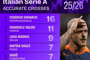 本賽季意甲精準(zhǔn)傳中排名: