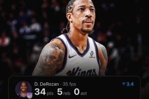 此役國王前鋒德羅贊打了39分鐘26投13中,三分7中1、罰球8中7拿到34分5籃板,正負(fù)值-17,沒有送出助攻!