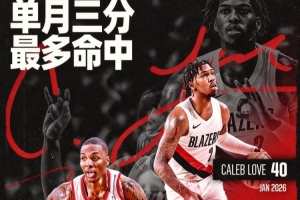 開拓者官微寫道:“來看看樂福在一月的(40記)三分表現(xiàn)?? 他在一月單月三分命中數(shù)排名開拓者隊史新秀第二位,僅次于達(dá)米安·利拉德(42記)”