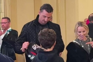 伊布在米蘭冬奧會開幕式當天與高布倫見面,向這位知名演員贈送了一件定制的米蘭球衣,這件球衣背面印有高布倫的名字和26號,這份禮物讓高布倫驚喜不已,他對伊布表示感謝。