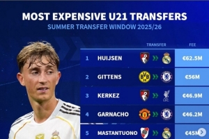 德轉(zhuǎn)今夏U21最貴轉(zhuǎn)會榜:歐元