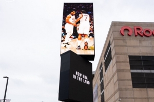 騎士官方曬出米切爾與哈登同框廣告牌:今夜,克利夫蘭將迎來嶄新篇章。