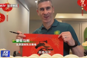 北京國安將帥用寫福字的方式向所有支持熱愛他們的球迷送上祝福,一起喜迎馬年新春。其中國安主帥蒙哥馬利還用中文給大家拜年,“新春快樂”。