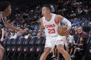 上半場,中國男籃球員賀希寧表現(xiàn)中規(guī)中矩,命中了全隊第一個三分球,首發(fā)出戰(zhàn)7分鐘,投籃2中1均來自外線,罰球2中1,拿到4分1助攻的數(shù)據(jù)。