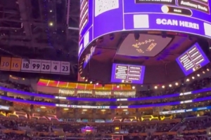 當(dāng)現(xiàn)場DJ播報(bào)阿德巴約得到83分時(shí),湖人主場球迷發(fā)出陣陣噓聲。