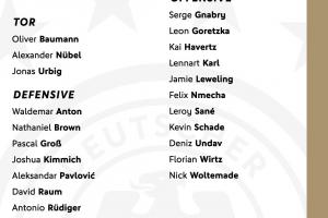后衛(wèi):安東(多特)、布朗(法蘭克福)、格羅斯(布萊頓)、基米希(拜仁)、帕夫洛維奇(拜仁)、勞姆(萊比錫)、呂迪格(皇馬)、施洛特貝克(多特)、斯塔赫(利茲聯(lián))、塔(拜仁)、佳夫(紐卡) 、瓦格諾曼(斯圖加特)