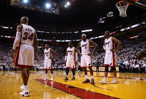 在連勝期間的一段六場(chǎng)比賽中,詹姆斯的投籃命中率達(dá)到72%,場(chǎng)均得到31分。在九場(chǎng)比賽中,韋德的投籃命中率為61%,場(chǎng)均得到28分。而在六場(chǎng)比賽中,波什的投籃命中率為65%,場(chǎng)均得到23分。