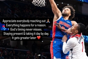 今天,坎寧安曬照并寫(xiě)道:“感激每個(gè)聯(lián)系我的人。凡事皆有其因由。上帝的安排總是恰到好處。保持當(dāng)下,一天一天堅(jiān)持。我歸來(lái)之時(shí)會(huì)更出色。”