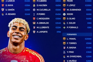 亞馬爾(2億歐)、費(fèi)蘭·托雷斯(5000萬歐)、巴埃納(4500萬歐)、皮諾(3500萬歐)、奧亞薩瓦爾(2500萬歐)、維克托·穆尼奧斯(2000萬歐)、巴雷內(nèi)切亞(1800萬歐)、伊格萊西亞斯(300萬歐)