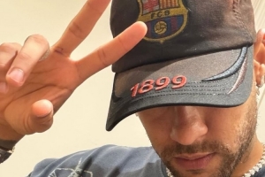 內(nèi)馬爾社媒曬出照片,他的衣服和帽子上都有巴薩隊徽圖案。