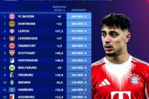 1. 拜仁慕尼黑:目前身價(jià)9.66億歐,本次更新上升600萬(wàn)歐