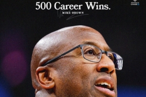 這是主教練邁克·布朗教練生涯的第500場(chǎng)勝利,球隊(duì)官方曬圖祝賀。