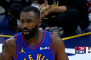 GIF-哈達(dá)威右側(cè)弧頂三分再中 掘金反超3分