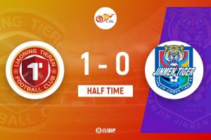 上半場(chǎng)補(bǔ)時(shí)3分鐘。半場(chǎng)戰(zhàn)罷,遼寧鐵人1-0天津津門虎。