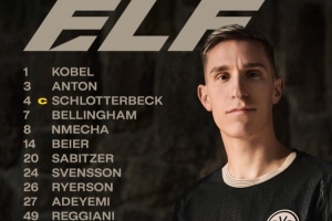 1-科貝爾、3-安東、4-施洛特貝克、7-喬布·貝林厄姆、8-恩梅查、14-拜爾、20-薩比策、23-斯文森、26-萊爾森、27-阿德耶米、49-雷吉亞尼