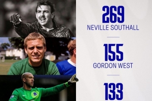 埃弗頓官方曬出俱樂(lè)部隊(duì)史零封榜單,皮克福德排名第五,距離第四的薩加爾還差20場(chǎng)。