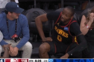 GIF-庫明加坐在觀眾席休息 等隊友過來拉才起身
