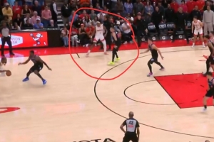 火箭主場123-122險勝熱火,最后一攻阿門補(bǔ)籃絕殺,在他發(fā)邊線球之后是希羅和他對位,但希羅注意力一直在持球的杜蘭特這邊,完全漏掉了偷偷跑到籃下的阿門。