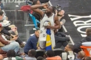 比賽中幾名老鷹隊(duì)球迷不停地高喊著:“追夢(mèng)真爛!追夢(mèng)真爛!”作為回應(yīng),追夢(mèng)徑直走向替補(bǔ)席,瞇起雙眼——似乎是在尋找那些根本就不在那里的亞特蘭大老鷹隊(duì)總冠軍旗幟。