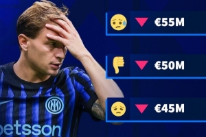 現(xiàn)年29歲的巴雷拉本賽季為國米各項(xiàng)賽事出戰(zhàn)35場,收獲1球7助。他目前的身價(jià)為6000萬歐,巔峰身價(jià)則是兩年前的8000萬歐。此次下跌,將是巴雷拉的身價(jià)4連跌。