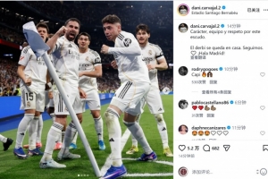 皇馬后衛(wèi)卡瓦哈爾社媒曬照慶祝勝利,配文:“韌性、團(tuán)隊(duì)精神與對(duì)這枚隊(duì)徽的敬意?!?/p>