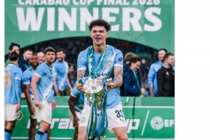 曼城官方社媒曬出奧賴利捧杯的照片,配文:“周六慶祝自己的21歲生日,周日為兒時的俱樂部將溫布利染成藍色,奧賴利的完美周末?!?/p>