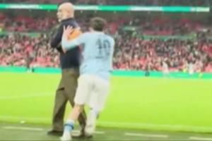 在裁判吹響終場(chǎng)哨后,謝爾基從替補(bǔ)席沖入球場(chǎng)慶祝,進(jìn)場(chǎng)前還“偷襲”式的推了瓜迪奧拉一把,瓜帥則一臉懵的回頭看了謝爾基一眼。