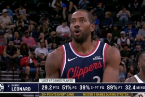 快船主場(chǎng)迎戰(zhàn)雄鹿,轉(zhuǎn)播方曬倫納德數(shù)據(jù):