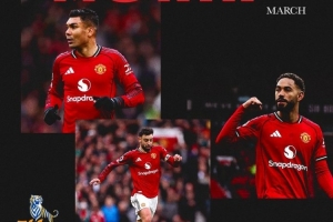 體育資訊3月24日訊 曼聯(lián)官方公布3月隊內(nèi)最佳球員候選,卡塞米羅、庫尼亞、B費三人獲提名。