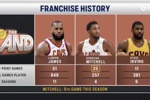 據(jù)統(tǒng)計(jì),這是米切爾本賽季第6場(chǎng)40+,騎士生涯第25場(chǎng),隊(duì)史第二,僅次于詹姆斯的51場(chǎng)。