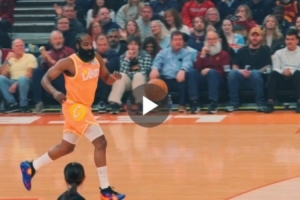 體育資訊3月25日訊 今日騎士戰(zhàn)勝魔術(shù)的比賽中,哈登上演個人賽季首扣。