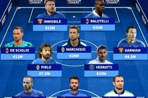 中場:德西利奧(AC米蘭,1200萬)、皮爾洛(尤文圖斯,750萬)、馬爾基西奧(尤文圖斯,2800萬)、維拉蒂(巴黎圣日耳曼,2000萬)、達(dá)米安(都靈,450萬)