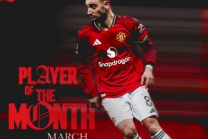 體育資訊3月27日訊 曼聯(lián)官方宣布,B費當(dāng)選3月份隊內(nèi)最佳球員。