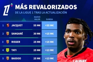 法甲球員身價(jià)上漲排名: