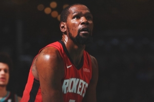 賽后火箭官方發(fā)布贏球海報,杜蘭特成為封面人物。