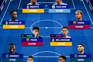 前鋒:姆巴佩(2億歐,皇馬),哈蘭德(2億歐,曼城)