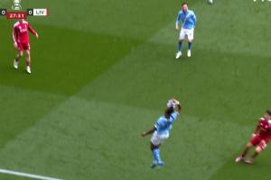 體育資訊04月04日訊 足總杯1/4決賽,曼城坐鎮(zhèn)主場對(duì)陣?yán)锲?,比賽?8分鐘,皮球即將出邊線,塞梅尼奧熟練撈球秀了一手。