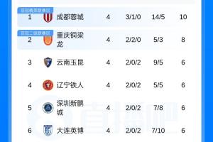 體育資訊04月05日訊 中超第4輪結(jié)束,目前積分榜上,三支西南地區(qū)球隊(duì)蓉城、銅梁龍和玉昆繼續(xù)領(lǐng)跑,泰山跌至第11,5隊(duì)仍負(fù)分,申花逆轉(zhuǎn)取勝逃離降級(jí)區(qū),津門虎一勝難求負(fù)9分仍墊底。
