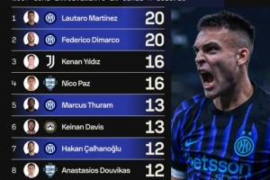 1、勞塔羅(國米)20次