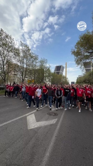 體育資訊04月08日訊 歐冠8強首回合,拜仁客戰(zhàn)皇馬,賽前拜仁官方曬出了球迷遠(yuǎn)征軍朝伯納烏前進(jìn)的視頻。