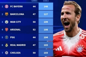 1、拜仁 44場(chǎng)148球