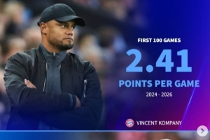 體育資訊4月8日訊 在歐冠淘汰賽首回合,拜仁2-1擊敗皇馬,孔帕尼也迎來執(zhí)教拜仁100場里程碑。德轉(zhuǎn)盤點(diǎn)了拜仁多位名帥在前100場比賽場均積分情況,具體如下: