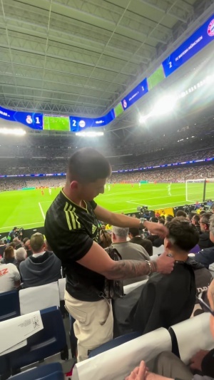 體育資訊04月08日訊 據(jù)西班牙科貝電臺(tái)報(bào)道,在皇馬vs拜仁的首回合比賽中,一名男子在伯納烏看臺(tái)上理發(fā),引發(fā)了其他球迷的不滿。