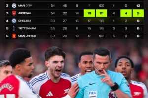 在自己的執(zhí)法生涯中,奧利弗共對阿森納出示了111張黃牌和4張紅牌,比任何其他英超球隊都要多。奧利弗執(zhí)法的阿森納比賽場次和曼城一樣多,均為64場,但他從未向后者出示過紅牌。