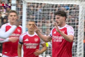 體育資訊10月04日訊 英超第7輪,阿森納vs西漢姆聯(lián)。比賽第38分鐘,賴斯補射攻破舊主大門,阿森納1-0領先!進球后賴斯沒有慶祝。